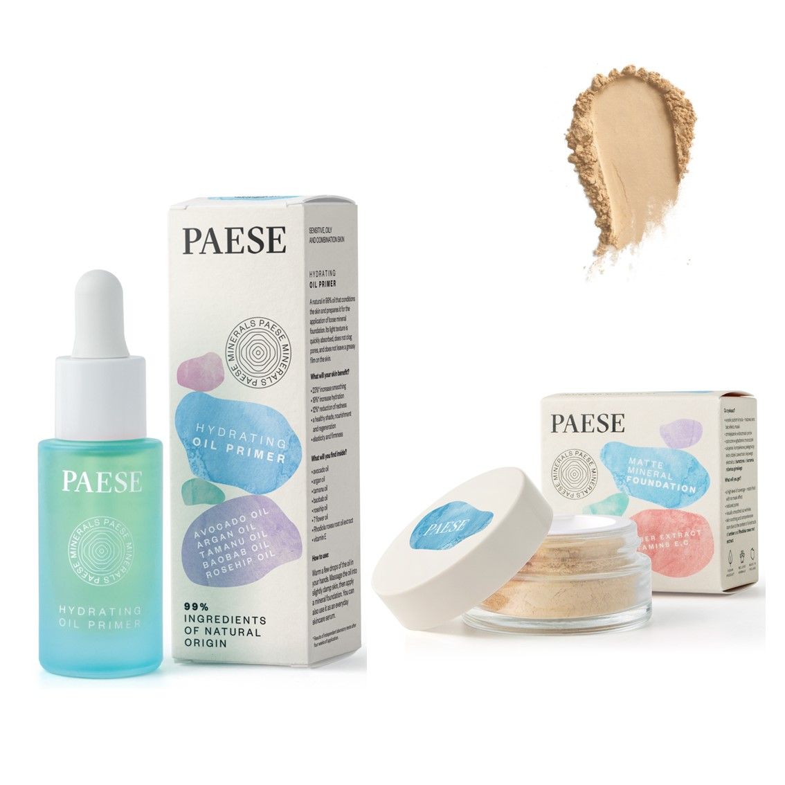 Duo Fond de teint minéral matifiant Vegan 7 g (HONEY) et Huile Hydratante 30 ml - PAESE
