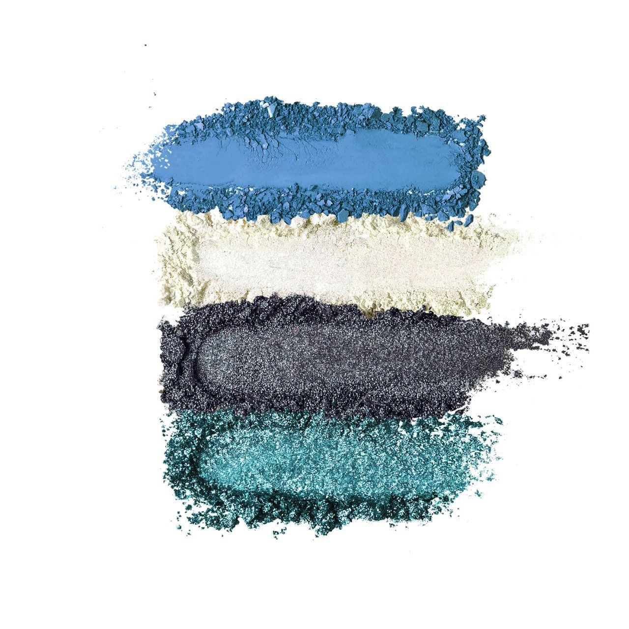 - Marine : un fard bleu satiné avec des éclats scintillants.